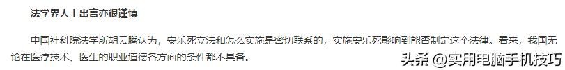 并且中国社科院法学所胡云腾认为,在我国关于“安乐死”的法律以及医疗技术并不成熟,因此“安乐死”在我国并不能实施。