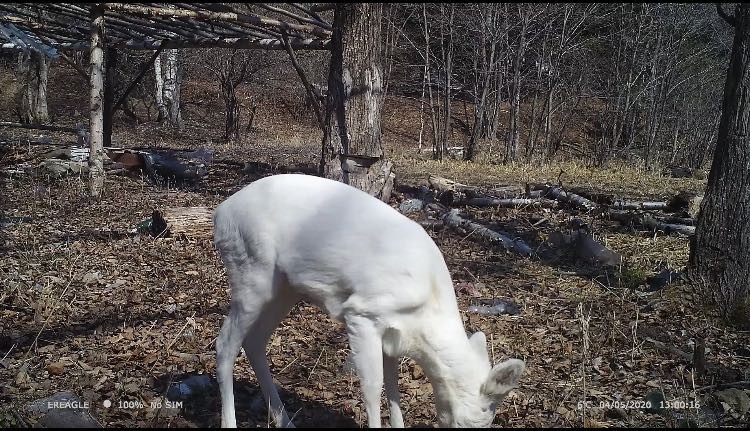 根据东北虎豹国家公园管理局提供的视频可以看到,拍摄时间为4月5日13时,一只全身雪白的小家伙出现在红外线相机面前,专心致志地低着头在觅食。这个长相类似小鹿的动物因为通体雪白,并不常见,第一时间管理局工作人员也无法辨别这是哪种野生动物。