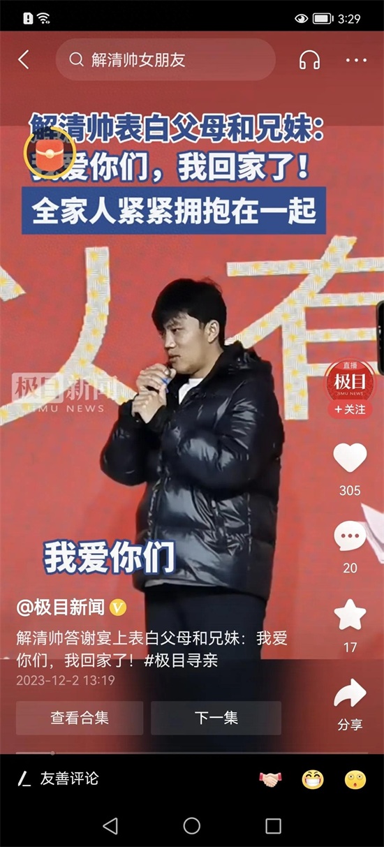 解清帅答谢宴上表白父母和兄妹:我爱你们,我回家了!