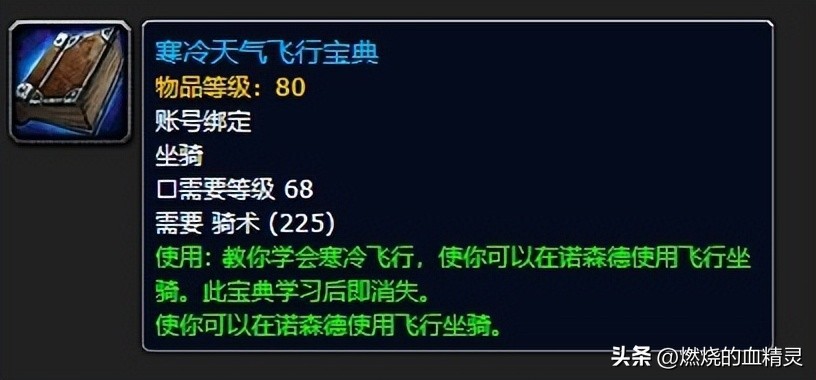 要学习寒冷天气飞行必须大号等级需达到77级,并且已经掌握高级骑术或飞行形态(德鲁伊).