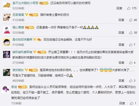 同时,在微博中,不少网友也表示经历了此次娱乐场所再次暂停营业。网友@张小五要日天 表示,“唱到一半被告知立刻停业了……好在还是唱了一下下。”