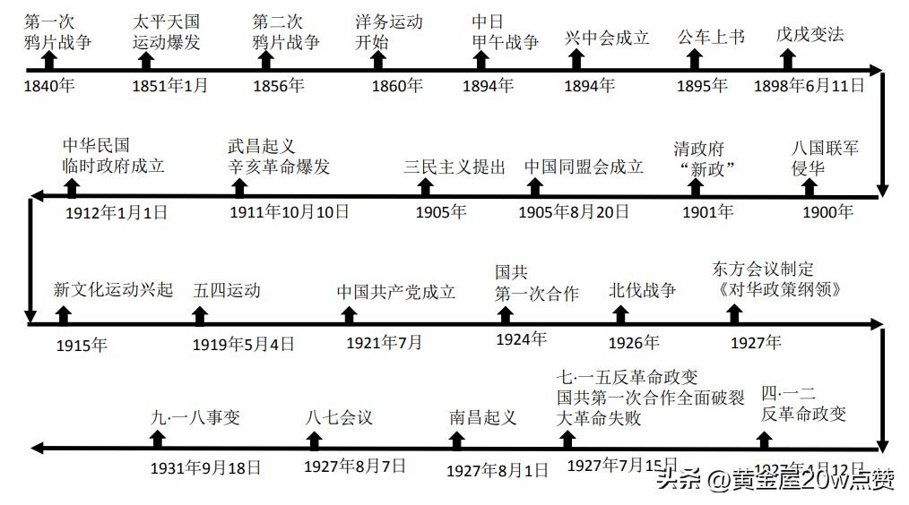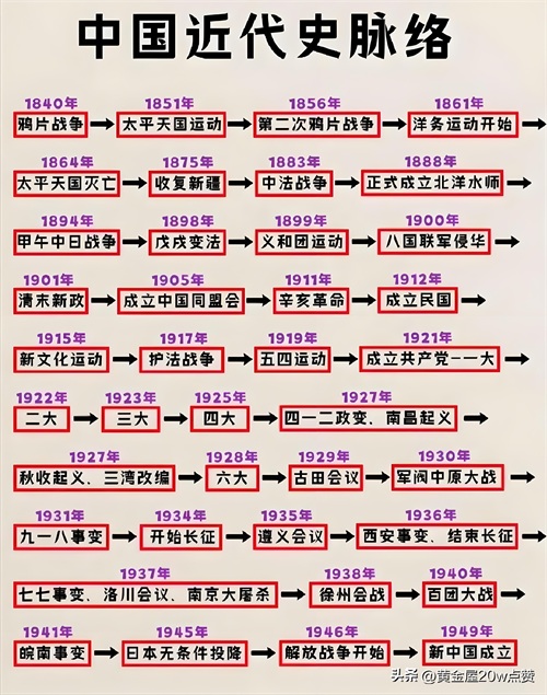近代史脉络详述: 1840年,鸦片战争爆发,中国被迫卷入近代世界格局,国运式微。1851年,太平天国起义,试图以农民起义的方式改革社会,然终因内外交困而败亡。