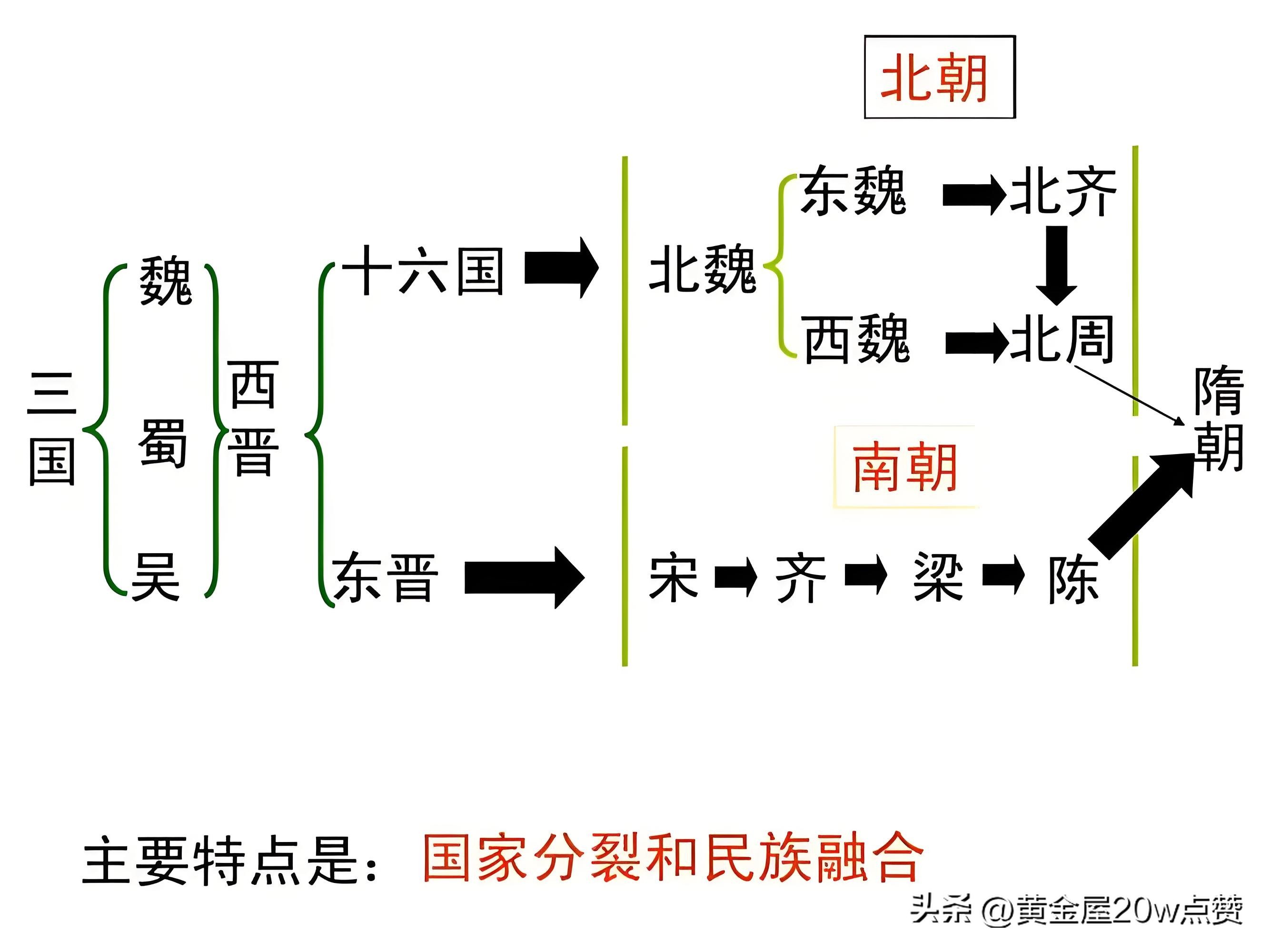 北魏后分裂为西魏与东魏,两者又分别被北周与北齐所取代,随后北周吞并北齐,形成了北朝的格局。