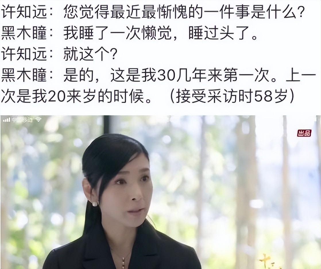 在前段时间的《十三邀》采访中,黑木瞳透露自己保持的秘诀就是做自己喜欢的事情,而且黑木瞳是个极度自律的人,因为在许知远问道她最近做过的一件后悔的事情的时候,黑木瞳竟然说是最近有一天睡过头了,更让人咂舌的是这是在她20多岁睡过一次懒觉之后,后来30年间第一次睡过头,并且她为此感到很后悔很自责。