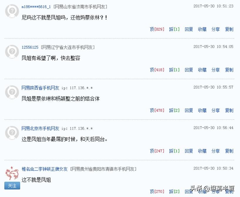 这时候又有网友拿出凤姐的照片跟蔡依林做比较。不得不说脸型和嘴唇确实重合度很高。