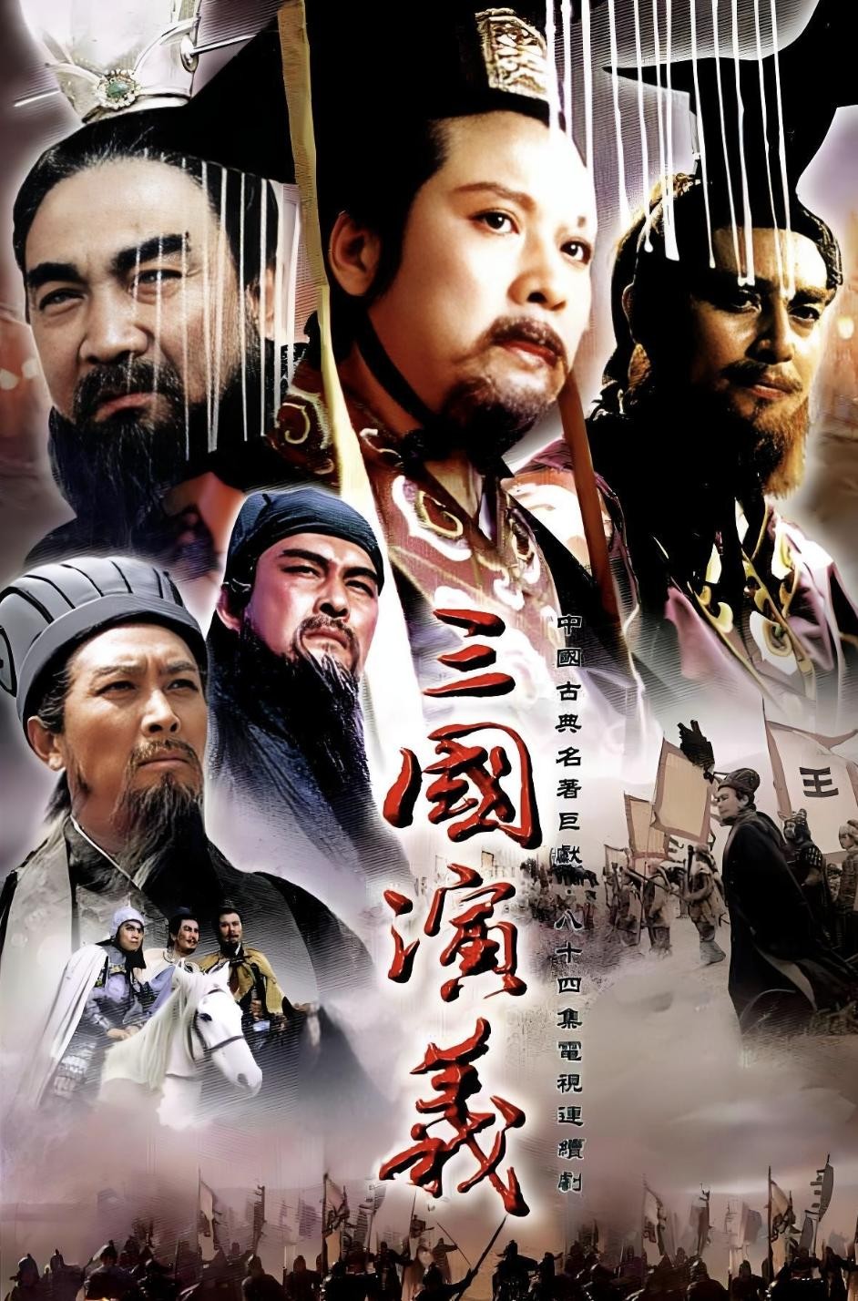 该剧改编自中国古典名著《三国演义》,着重表现了东汉末年到西晋初年将近一个世纪中,各个政治集团间错综复杂、紧张尖锐的斗争,以及这些斗争如何发展成为连接不断的对政治权力的争夺和军事冲突。故事从黄巾起义开始,到三国鼎立,再到三分归一统,波澜壮阔的三国时代的大幕被缓缓拉开。剧中成功刻画了曹操、刘备、孙权、诸葛亮、周瑜、关羽、张飞等众多脍炙人口的人物形象。