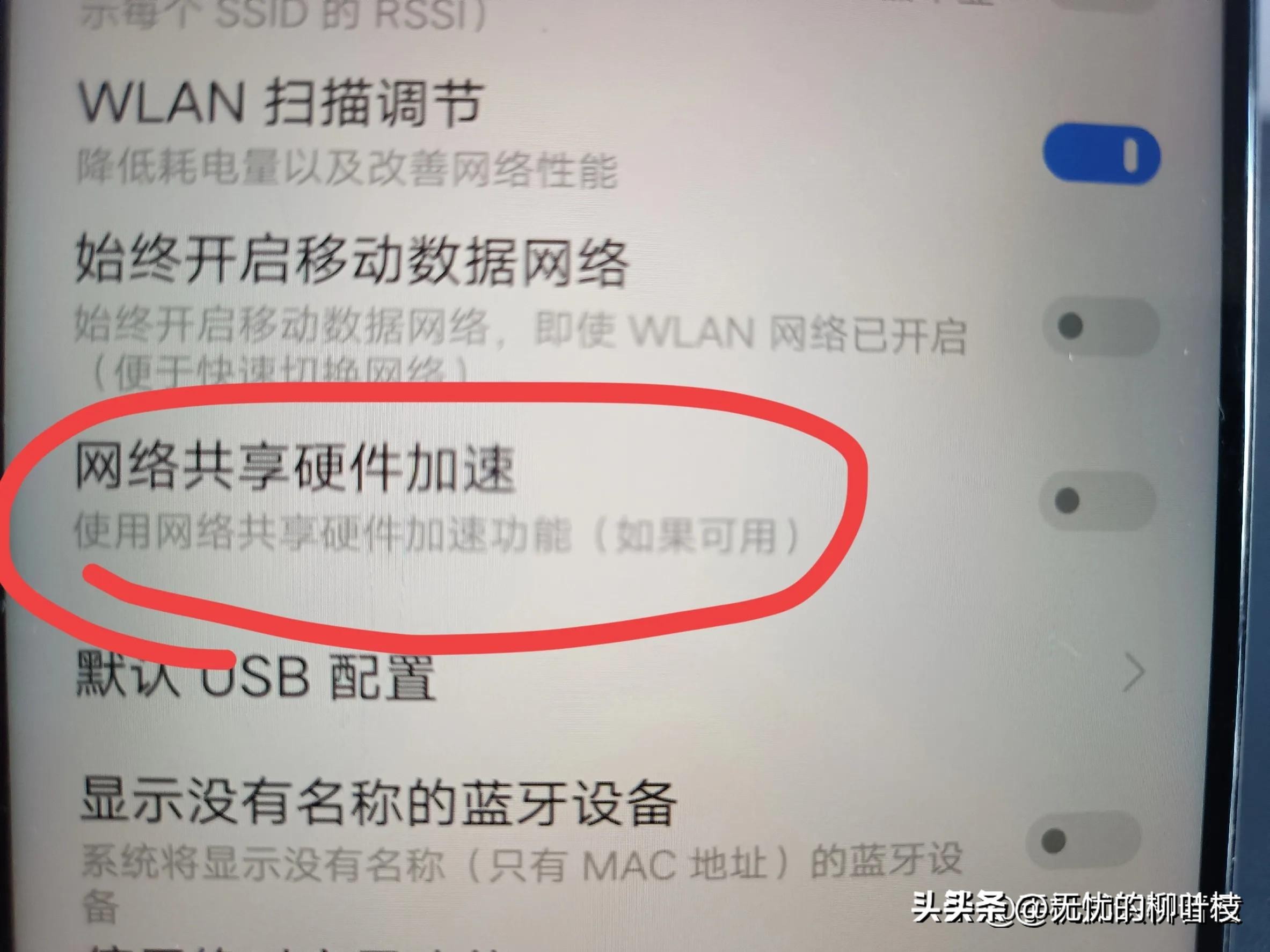 4进入“开发者选项”,找到“网络共享硬件加速”选项,将其开启即可