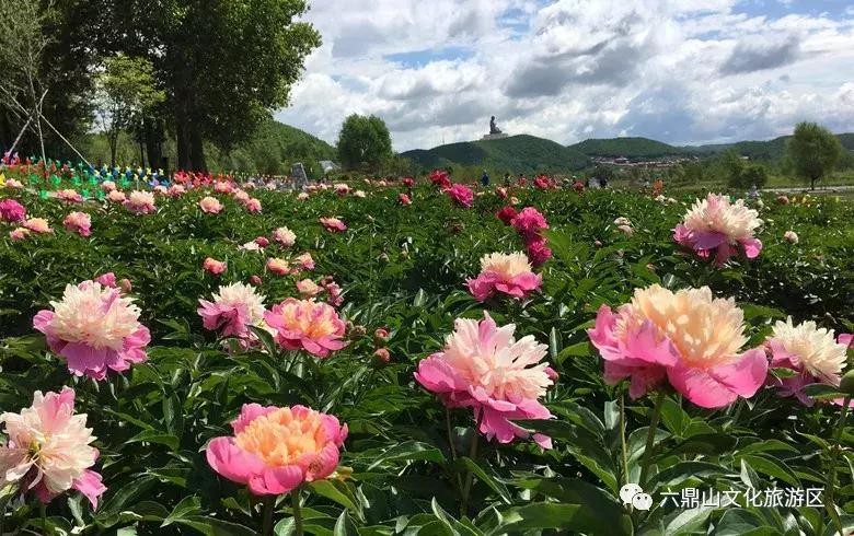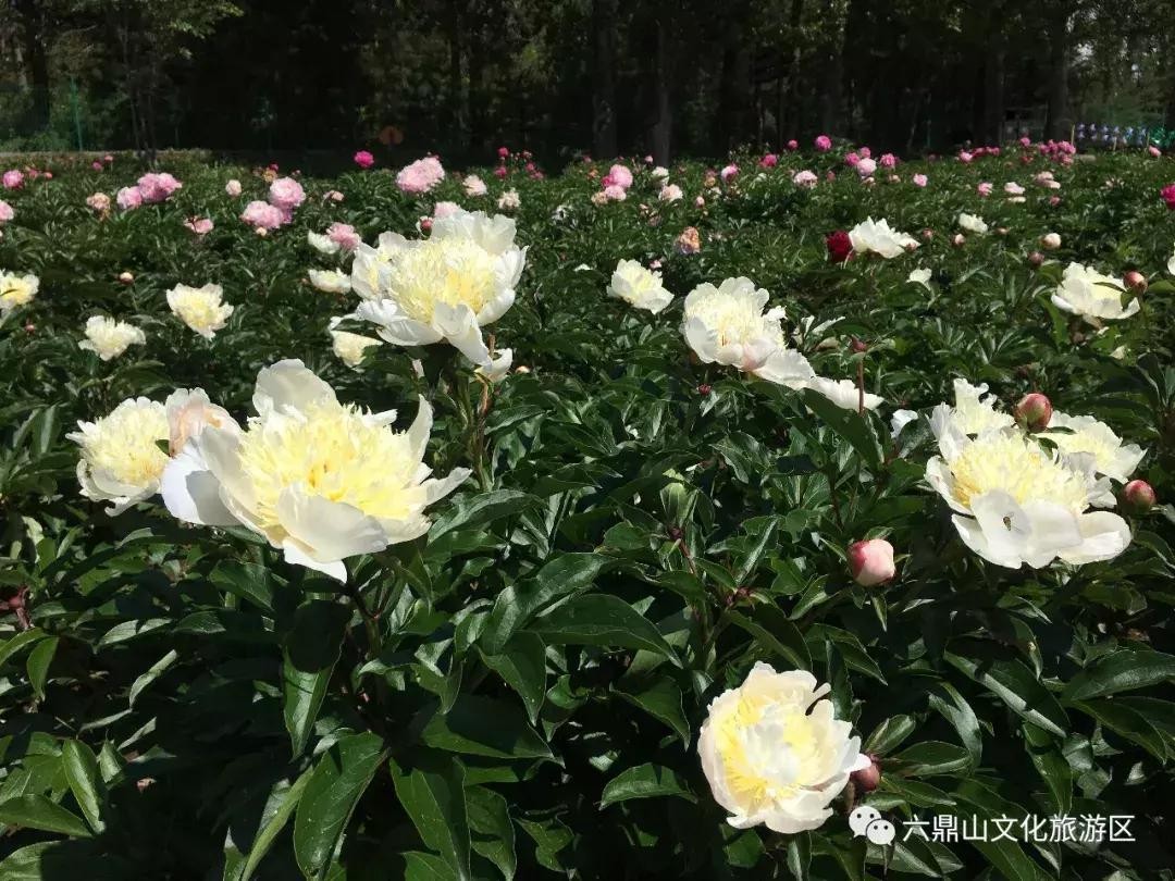 艳阳高照,六鼎山文化旅游区吉祥花海内,芍药花进入盛花期,粉的、白的、黄的芍药花迎着徐徐微风,绚丽绽放,连绵的花海犹如铺在大地上的彩色丝毯,灿若彩霞,游人置身于花海之中,心旷神怡,流连忘返。景区在此呼吁广大市民和游客,文明赏花,留意脚下的青青草地,莫要摘取枝头的鲜花,您的美德将是最光彩照人的风景。