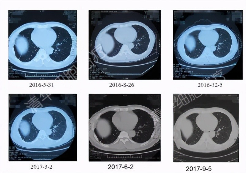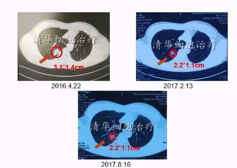 2、胃癌·肺转移,2016年4月23日至2017年9月,行12周期NKT细胞免疫保健。