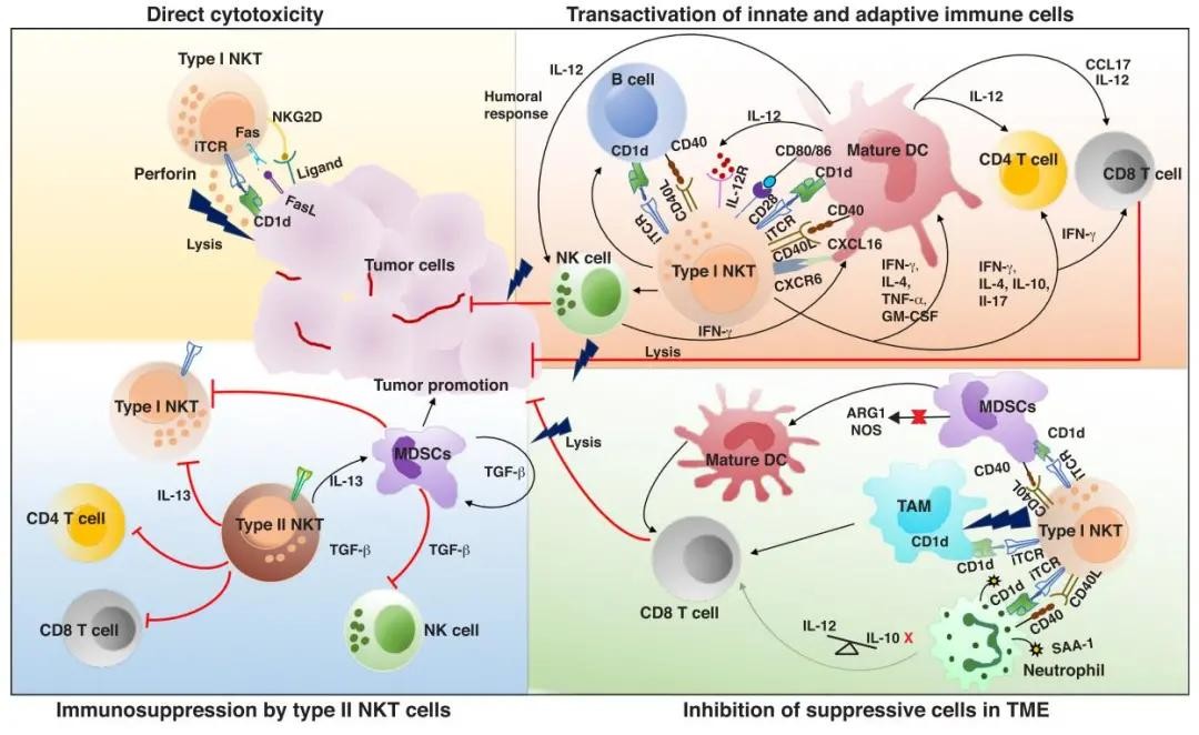 NKT细胞在体内介导强大的免疫调节和细胞毒作用。