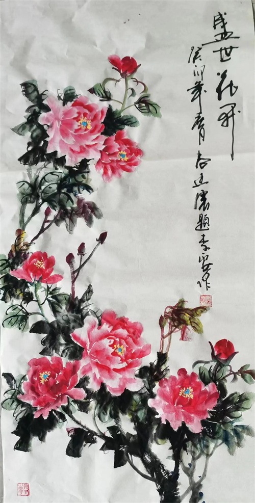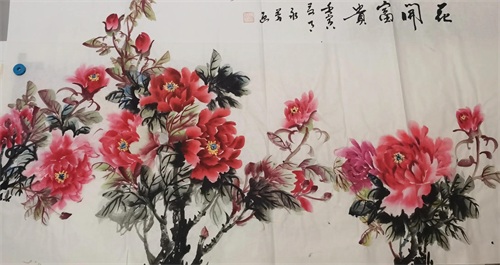 2017年9月,市图书馆“翰墨抒情、秋写沂蒙”,作品国色天香被市图书馆收藏。