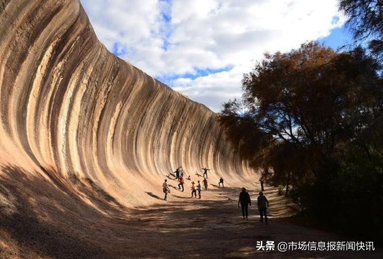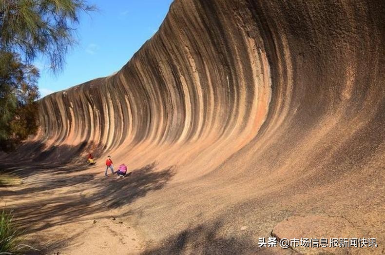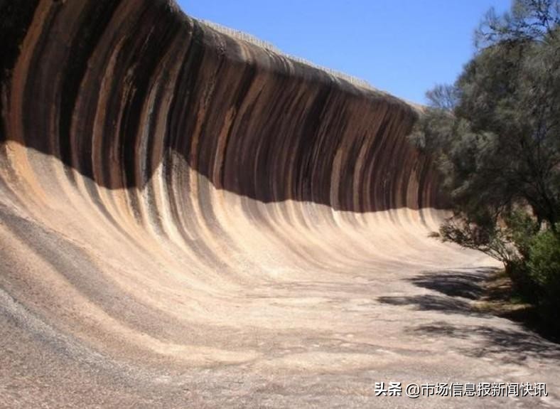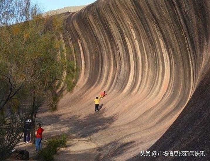 这个陆地上的“海浪”就位于西澳洲中部的沙漠,这个海浪岩长约110米,高达15米。