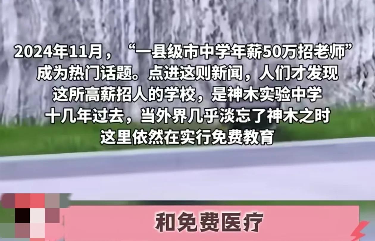 神木本地人已经享受上了12年义务制教育,还有全民免费医疗!!有的学校甚至50万年薪招聘高学历教师!