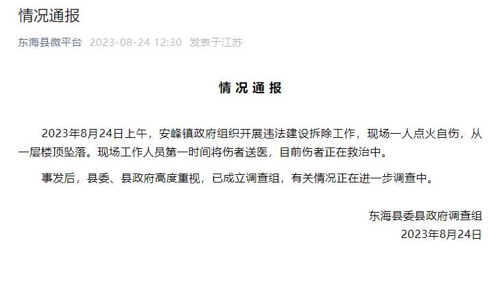 8月24日,东海县微平台发布《情况通报》,全文如下: