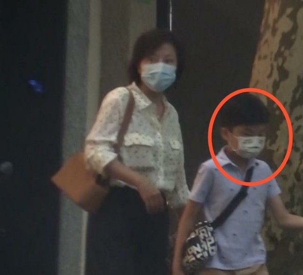 9岁儿子伊万已经长到了妈妈鲍莉的肩膀高,他斜挎着一个黑色小背包,打扮得很时尚。小男孩很听话,乖乖的样子很是可爱。