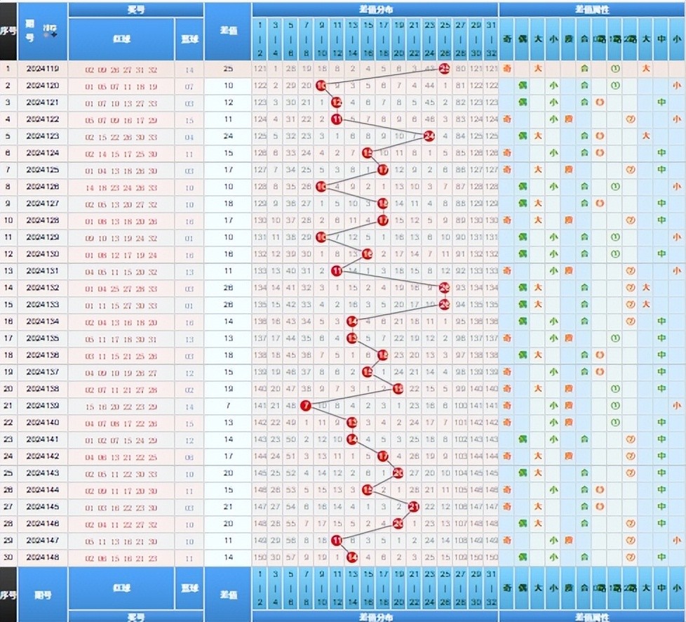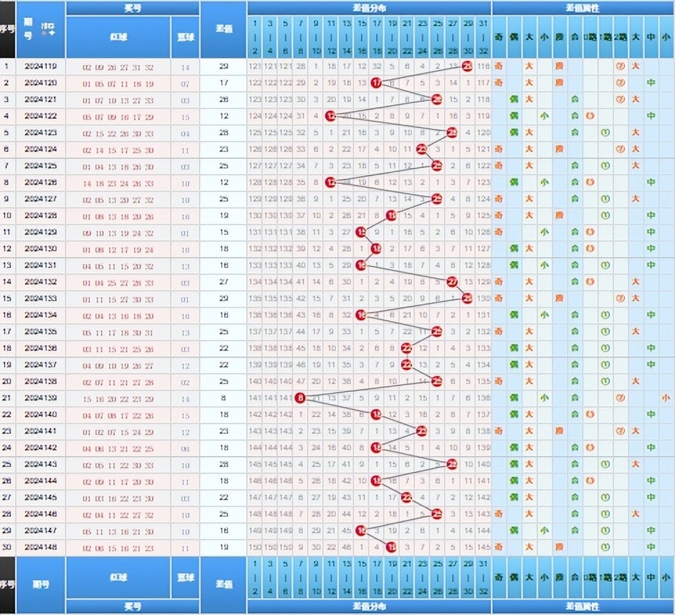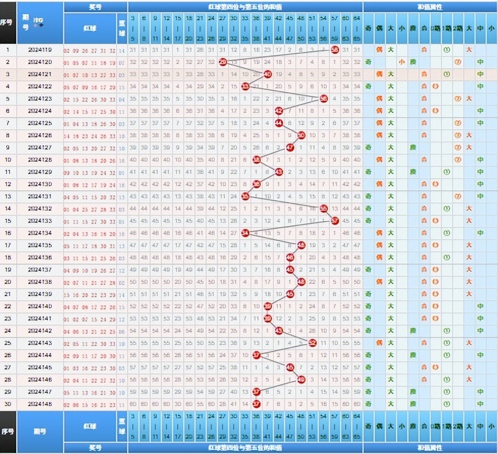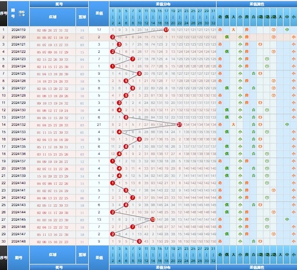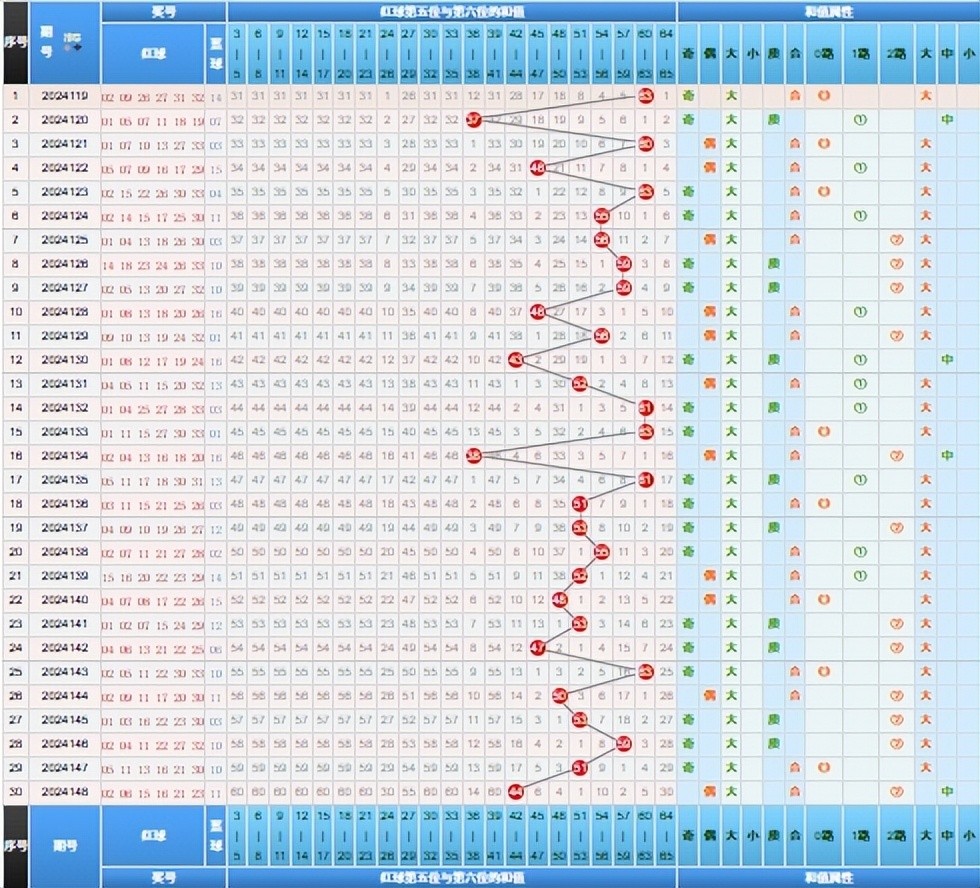 红球连号分析:近两期开出了连号,上期就有连号,本期预计不会再出现连号。