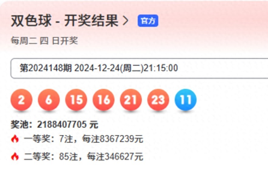 上期开奖号为:02、06、15、16、21、23 + 11,大小比是2 : 4