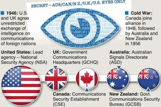 二战结束后的几年,澳大利亚,新西兰,加拿大陆续加入,至此五眼联盟正式确立。