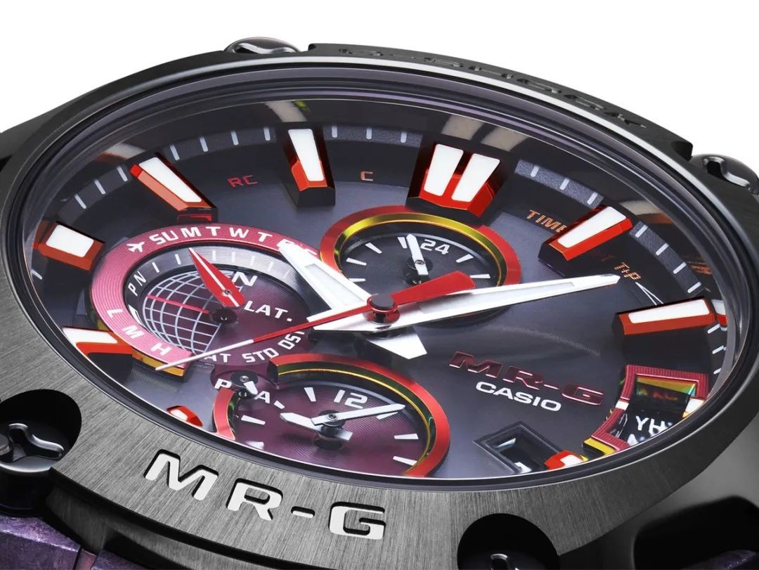 表壳为钛金属材质,经深层硬化处理,再现了淬火刀片的质感,加以深紫色AIP涂层,高温炼钢时出现的颜色,高硬度且不易刮花的质感,彰显出淬火钢般的坚韧。