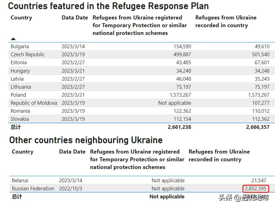 其中执行难民响应计划的国家共接纳了266万多来自乌克兰的难民,俄罗斯接纳了285万多,而其他欧洲国家共接纳259万多(表格太长不列了)。