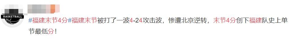 新赛季的CBA也出现了许多破纪录的比赛,比如福建队单节4分破队史纪录的比赛,最多领先20分最后还输掉比赛,真的令福建队球迷心碎。