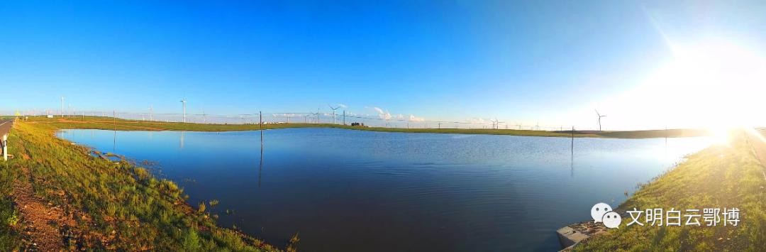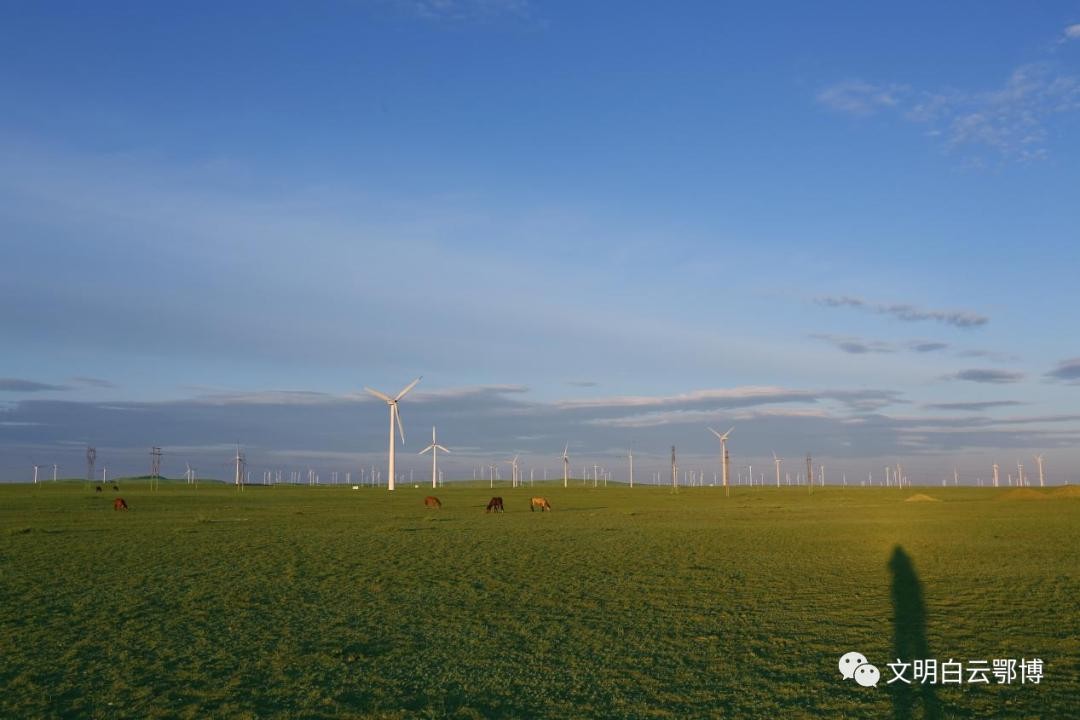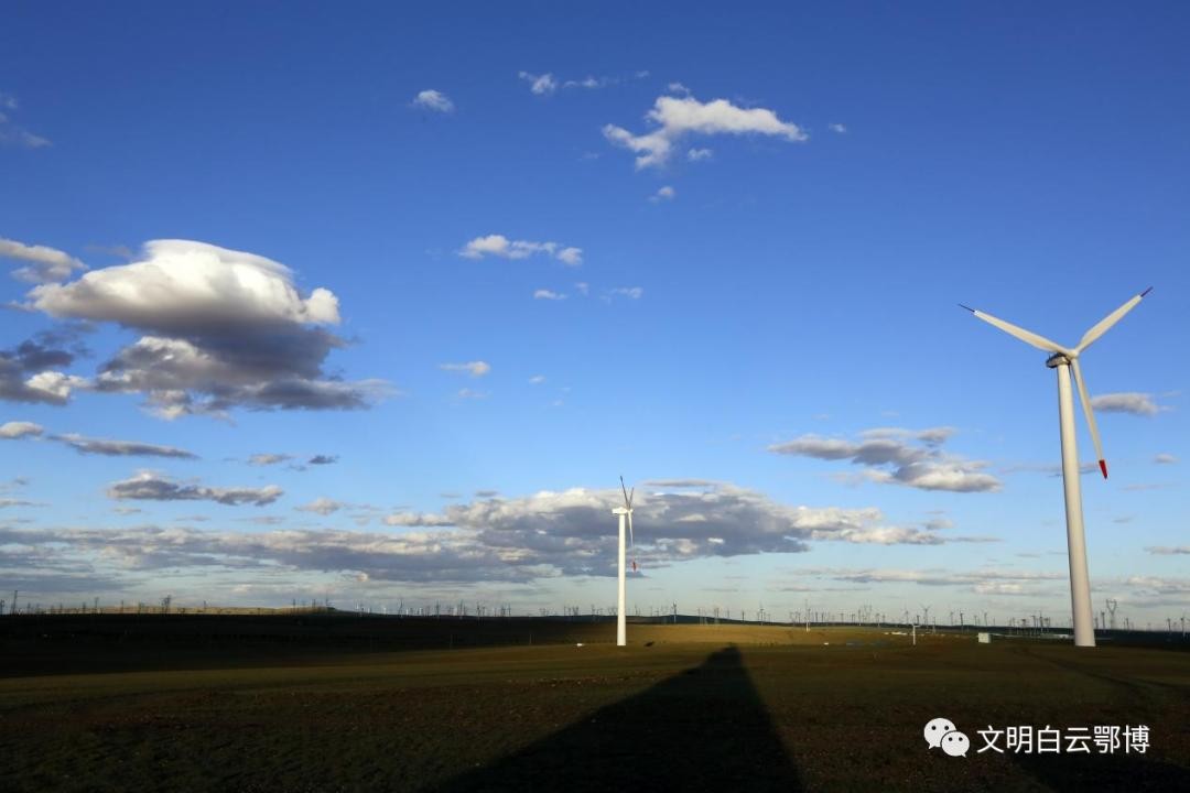 独特的区位,独特的地理,独特的环境,让白云鄂博常年多风,形成了天然大风场。置身城外,一杆杆风机赫然林立,给草原添了精致,给草原增了生气。