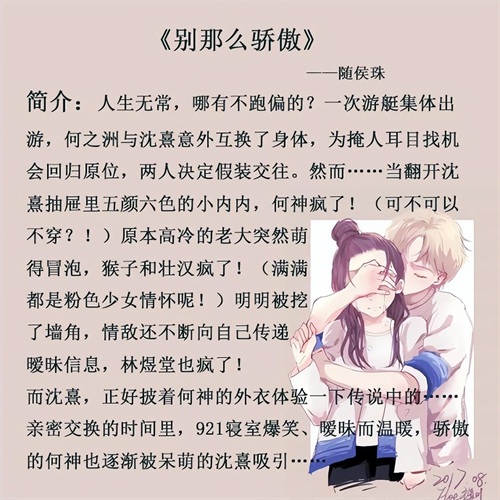 短书评:男女互穿温馨欢乐甜宠文。男主高富帅高冷,女主白富美无脑,俩人因为意外互穿,开始搅和在一起,互穿结束后就开始腻在一起了。女主各种萌啊,作者文笔着实不错,写出来的女主一点都不觉得苏麻讨厌,又萌又软,好想要个这样的女儿……互穿的时候笑点很密集,高冷男神的外壳+软萌妹子的灵魂,一开始让舍友们大跌眼镜!……发展到最后舍友壮汉竟然表示我爱软萌萌的老大!看得时候真是笑岔气。