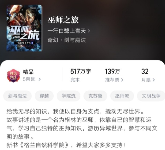 哈喽,大家好,我是云海,点击【关注】,每天给您推好书!奇幻巫师流的不可跨越三座大山,成绩均在万订精品以上,评分高达9.8!