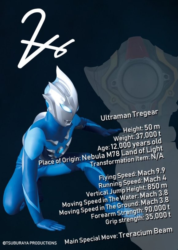 托雷基亚奥特曼数据:身高:五十米;体重:三万七千吨;年龄:一万两千岁;出生地:光之国;飞行速度:9.9马赫;奔跑速度:4马赫;跳跃高度:850米;水中移动速度:3.8马赫;地面移动速度:3.8马赫;力量强度:九万吨;握力:三万五千吨;