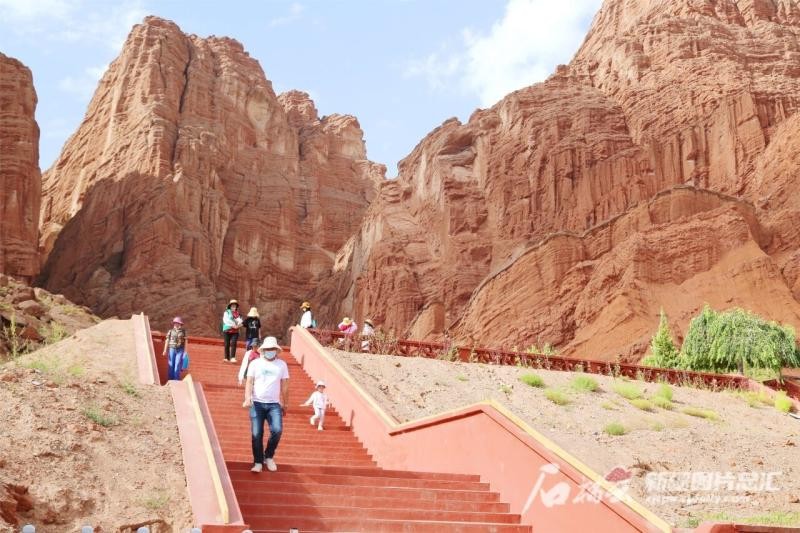 游客在库车天山神秘大峡谷景区游玩(资料图)。尼亚孜·热合曼摄