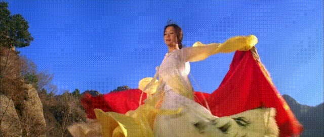 一出场也是惊艳了不少人,与成龙扮演的蒙毅在回城的时候在山顶翩翩起舞的身影,到现在还赫然在目。