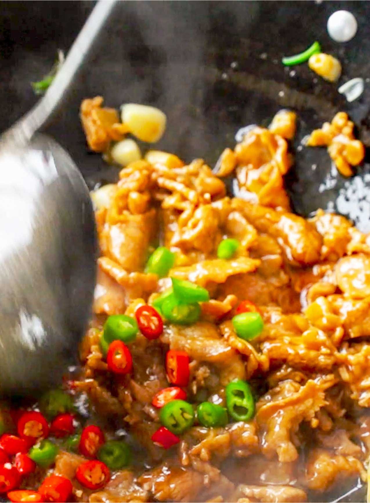 锅中倒油,爆香蒜粒、姜片、葱花,加入腌制好的牛肉滑熟,再加入调好的料汁,再加入辣椒圈调味即可出锅。具体怎么操作呢?准备好食材和我一起制作吧。