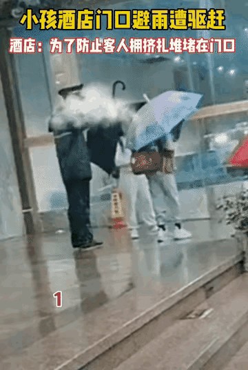 闹大了!吴川福满楼酒店保安驱赶避雨小孩,网友怒了