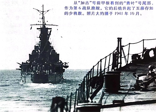 1941年12月9日,“青叶”号率“衣笠”号、“加古”号和“古鹰”号,支援日本陆军第144联队和海军陆战队关岛登陆作战;12月20日,“青叶”号等4艘重巡洋舰支援日本陆军攻占威克岛;1942年5月参加了珊瑚海航母对攻战;1942年7月起又参加了瓜岛争夺战,赢得了“所罗门之狼”的称号。