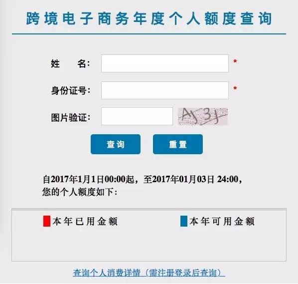 为便于消费者购买跨境进口商品,现提供跨境电子商务零售进口个人额度查询功能,消费者可查询跨境电子商务零售进口个人年度已使用额度、可用额度以及消费详情信息,网址为:
