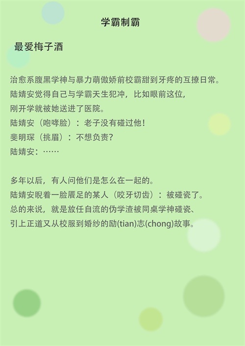 5.学霸制霸 最爱梅子酒(暴力萌前校霸&治愈系腹黑学神)