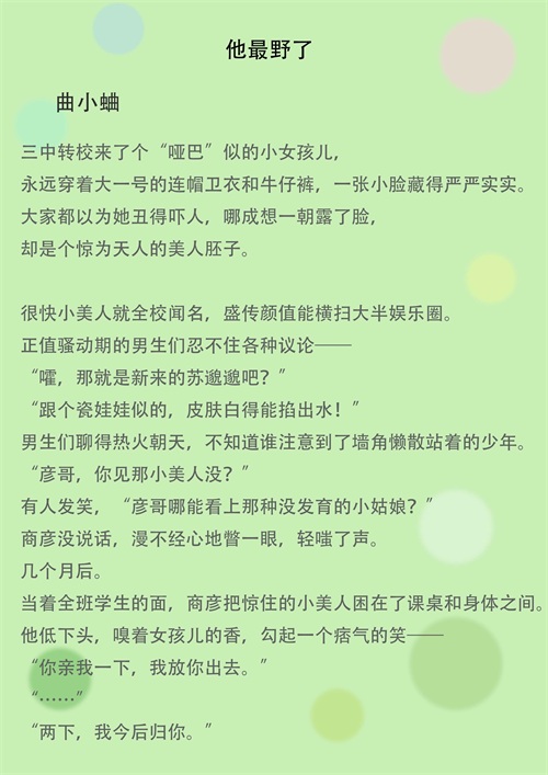 1.他最野了 曲小蛐(IT大魔王&先心病小美人)