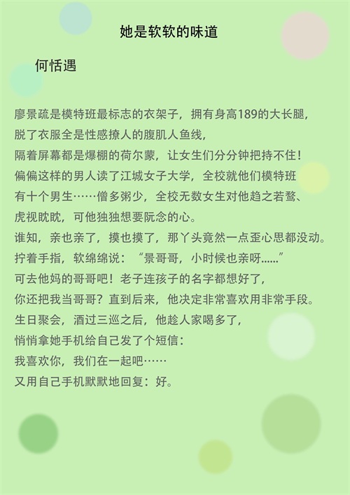 3.她是软软的味道 何恬遇(不知男帅的软妹子&荷尔蒙爆棚的男模)