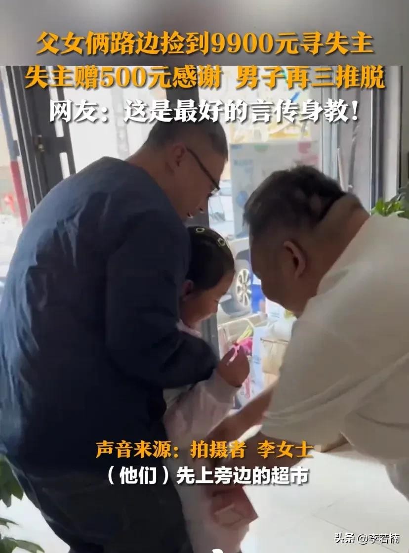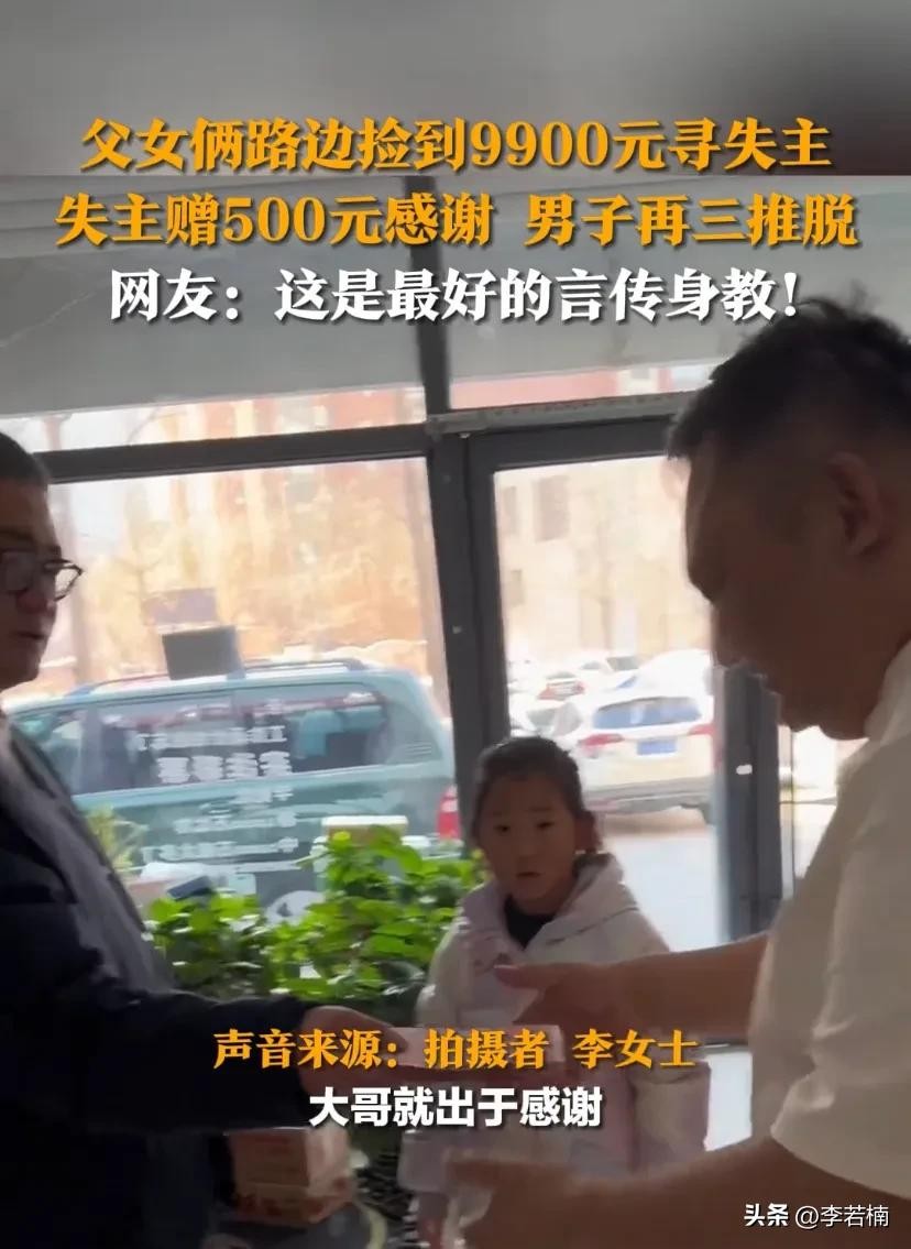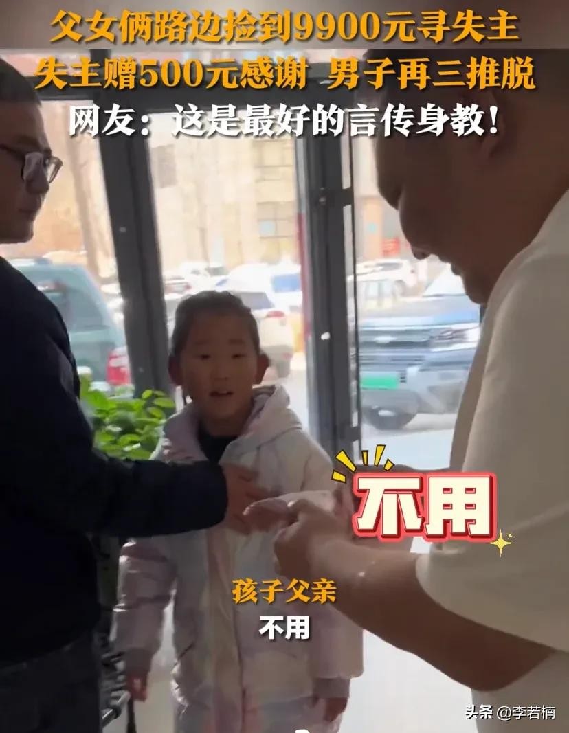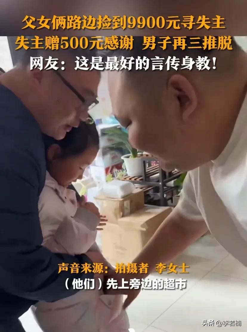 正能量!父女俩路边捡到9900元寻找 失主赠500元感谢 男于再三推脱