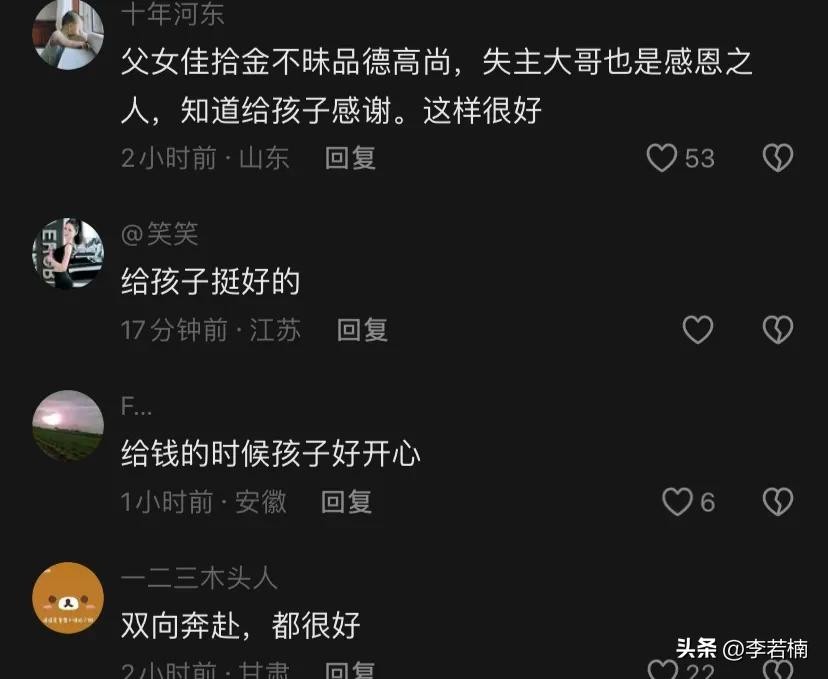 在当下这个物欲横流的时代,大家都在为了生活辛苦奔波,挣钱也不是那么容易的事儿,这父女俩难道就真的一点都没犹豫过吗?会不会也有那么一瞬间,心里闪过一丝别样的念头呢?但不管怎样,他们最终做出了最正确、最让人敬佩的选择。