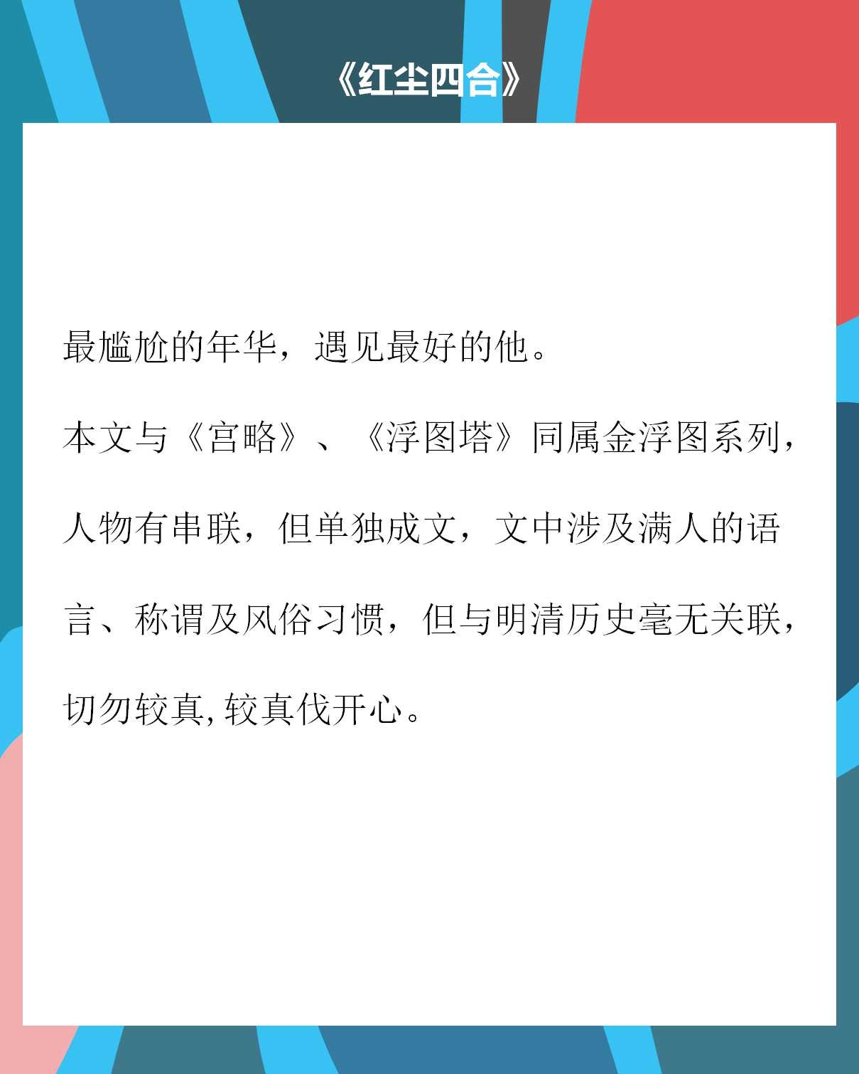 十二、《红尘四合》尤四姐 40万字 BG 完结
