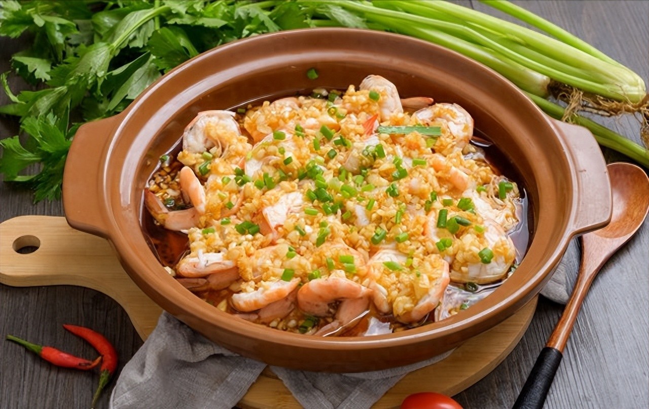 蒜蓉蒸虾通过蒸制的方式锁住虾肉的营养,同时避免过多油脂,是一道健康又美味的佳肴。