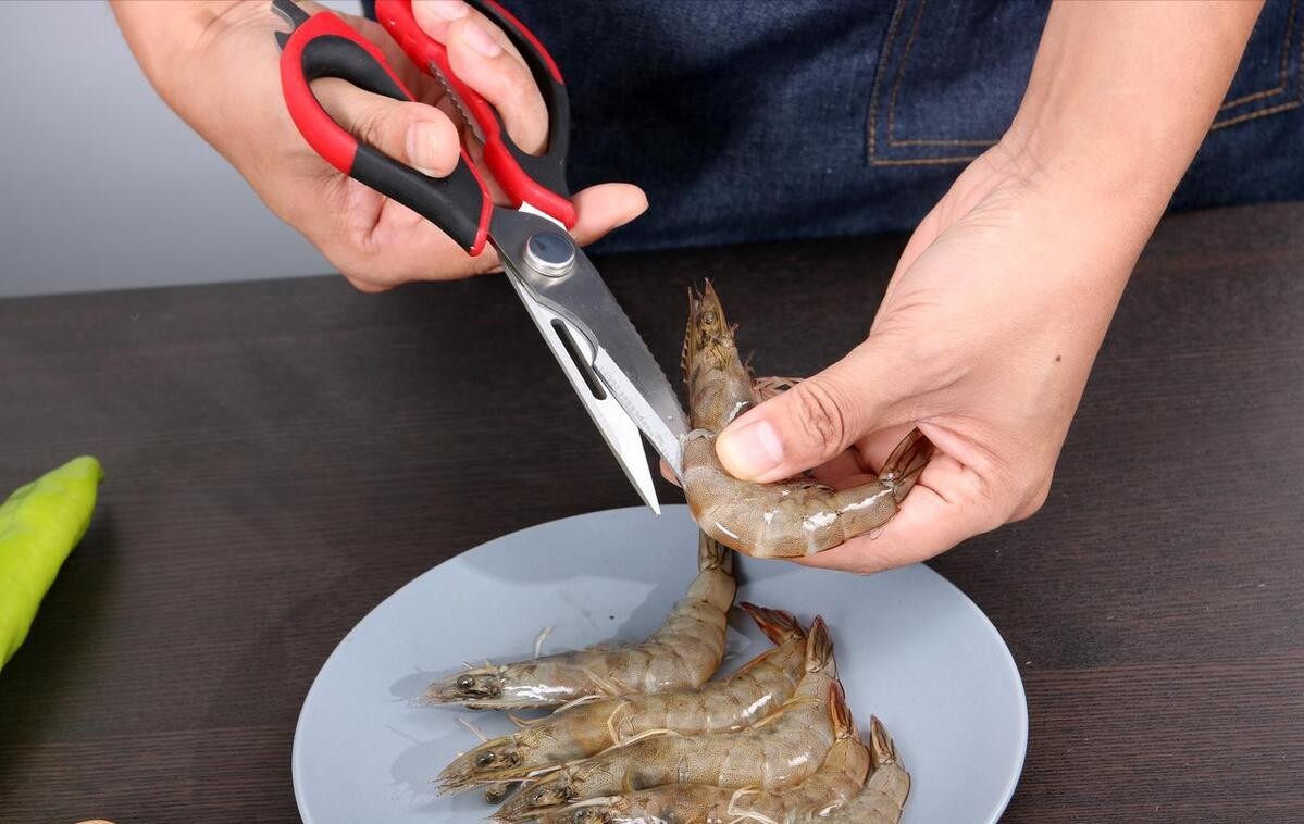 将虾洗净后剪去虾须,用剪刀沿背部剖开,取出虾线。开背不仅能让调料渗透虾肉,还能让蒜香更加均匀地融入。这些整齐排列的虾,像一件等待完成的艺术品,背部微微张开,正期待着蒜蓉为它注入灵魂。