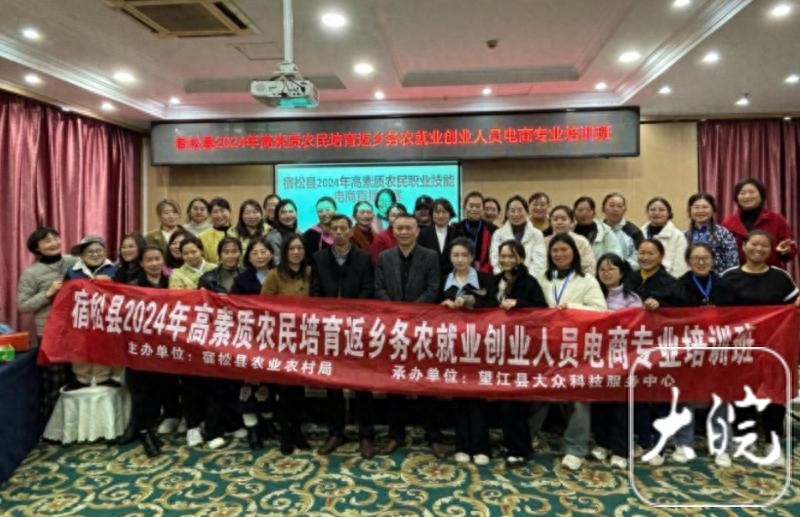 大皖新闻讯 近日,宿松县安瑞大酒店内人声鼎沸,热闹非凡,一场别开生面的高素质农民培训电商直播大赛在此圆满落幕。此次大赛由望江县大众科技服务中心承办,不仅展示了新时代农民的电商直播技能,更是他们拥抱数字经济、展现创新活力的生动实践。