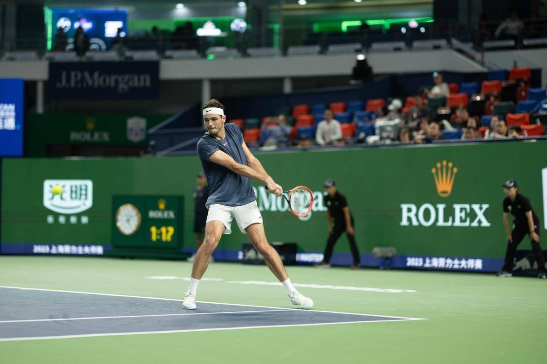 劳力士代言人泰勒·弗里茨在2023年上海劳力士大师赛上的精彩瞬间 ©Rolex/Antoine Couvercelle