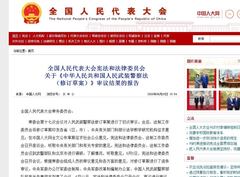 中国人大网,全国人民代表大会宪法和法律委员会关于《中华人民共和国人民武装警察法(修订草案)》审议结果的报告