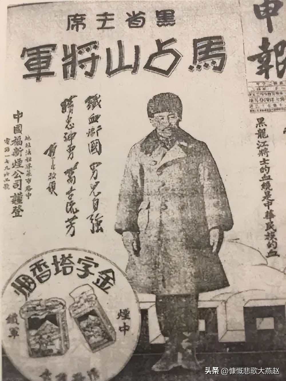 上海福昌烟公司还专门生产了“马占山将军香烟”,其广告词就是,“愿人人都学马将军”。