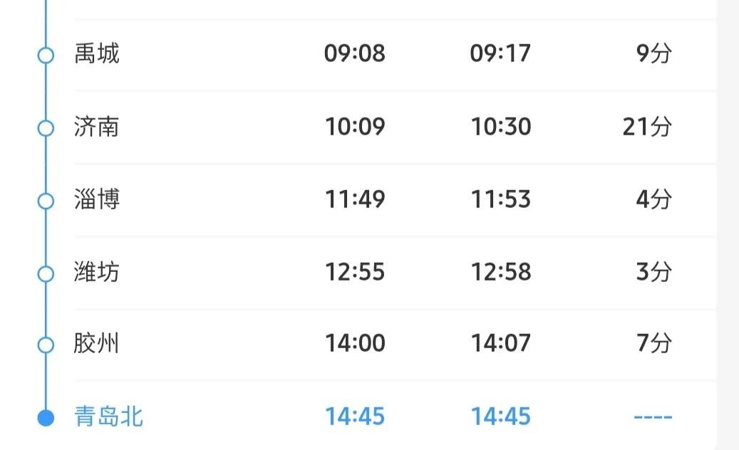 其中,哈尔滨西站至青岛北站,全程运行25小时13分,运行总里程1990公里 ,使用车次为K704/701次。