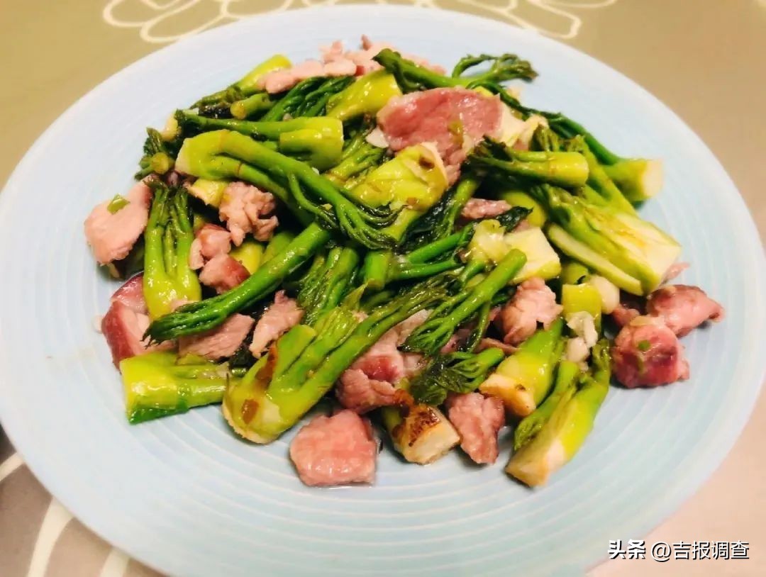 还有刺嫩芽炒腊肉,只要把刺嫩芽切碎,旺火热油爆炒,就能感受里面鲜甜的汁水了。