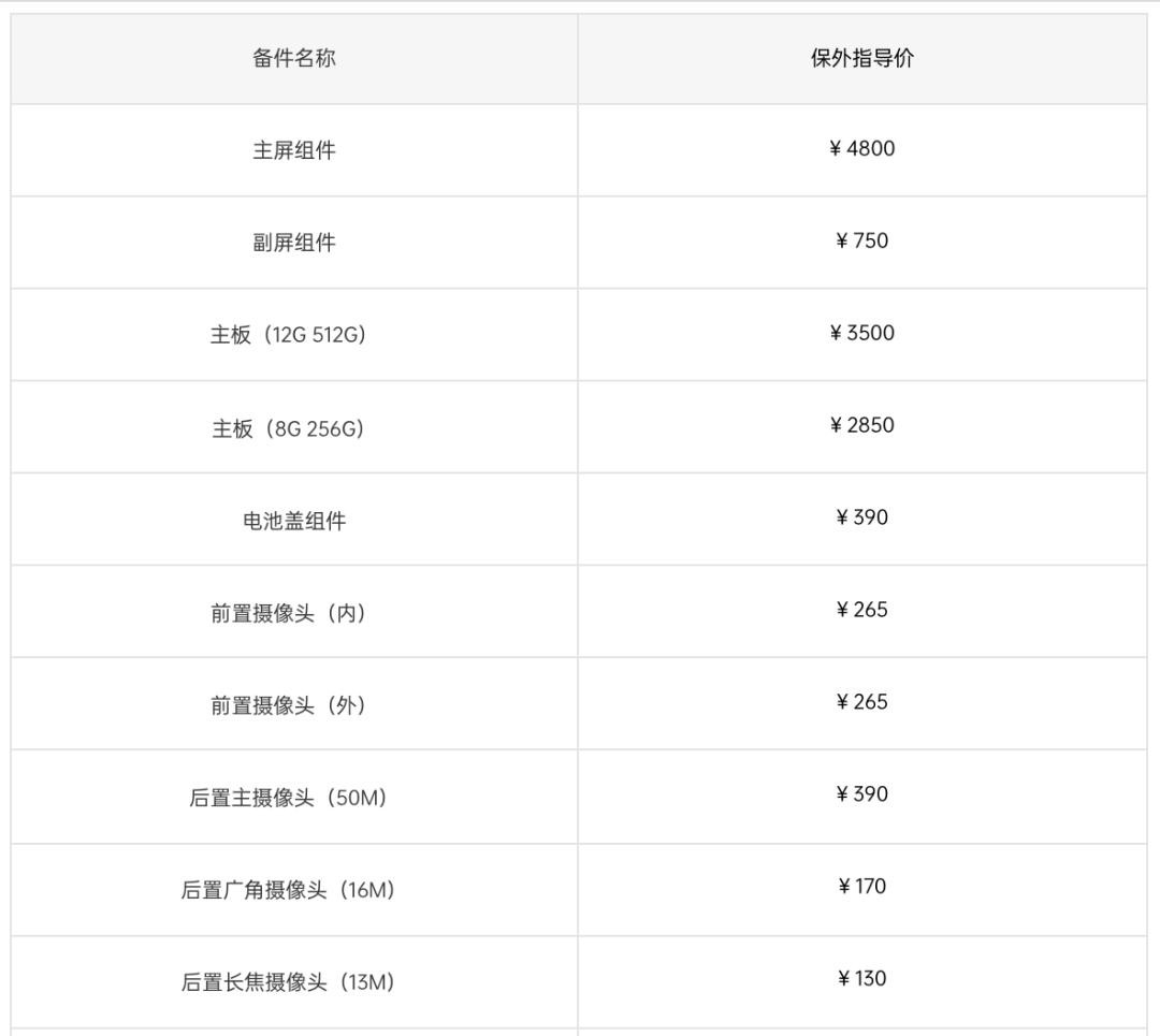 目前在官网也已经可以查询到OPPO Find N的官方维修价格,可以看到保外指导价:主屏组件维修价是4800元,副屏组件保外指导价是750元,8+256GB版主板保外维修价是2850元,12+512GB版主板保外维修价是3500元,购买折叠屏这类旗舰的用户最好还是买个官方保障比较好。